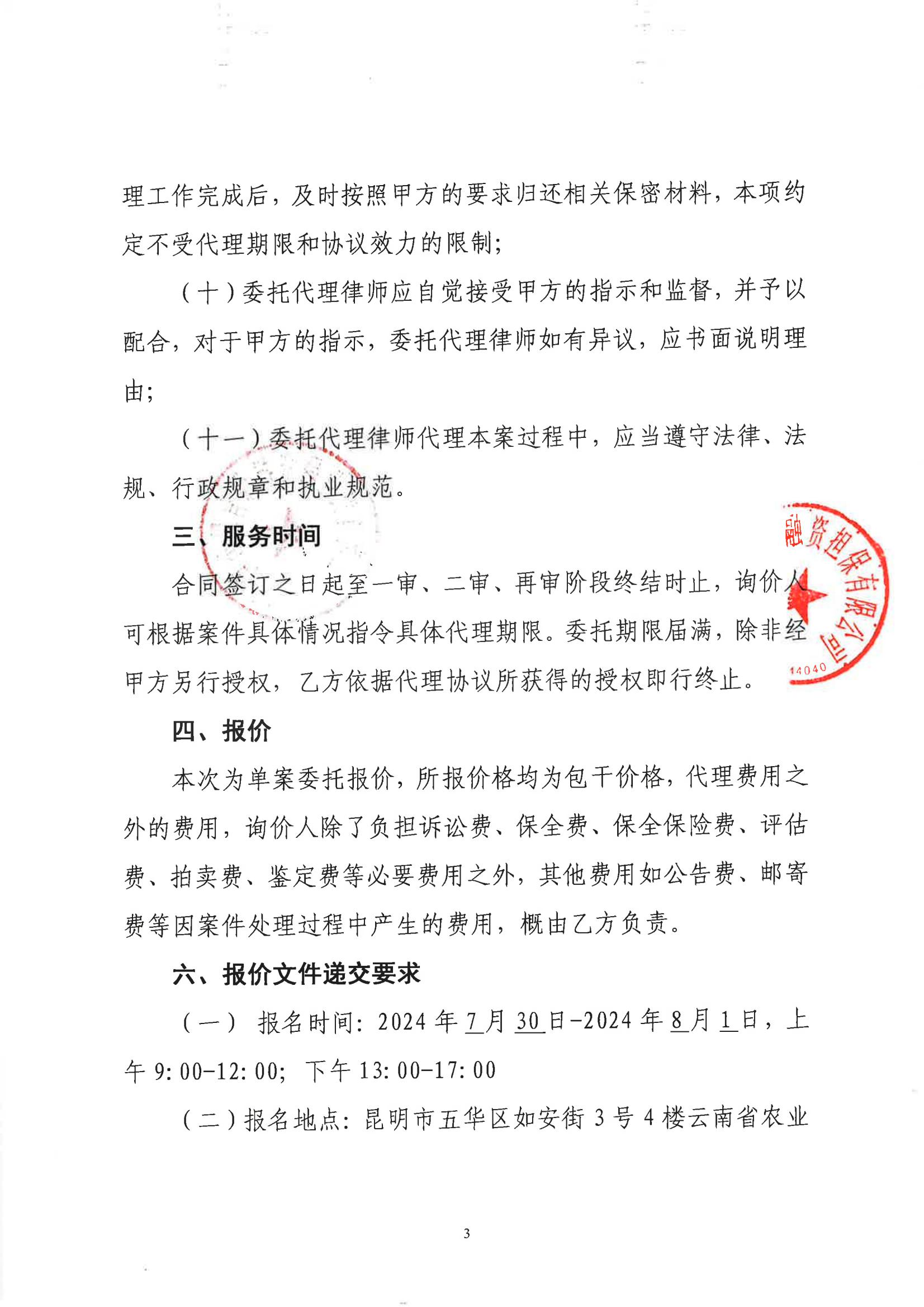 云南省農(nóng)業(yè)融資擔(dān)保有限公司詢價(jià)公告