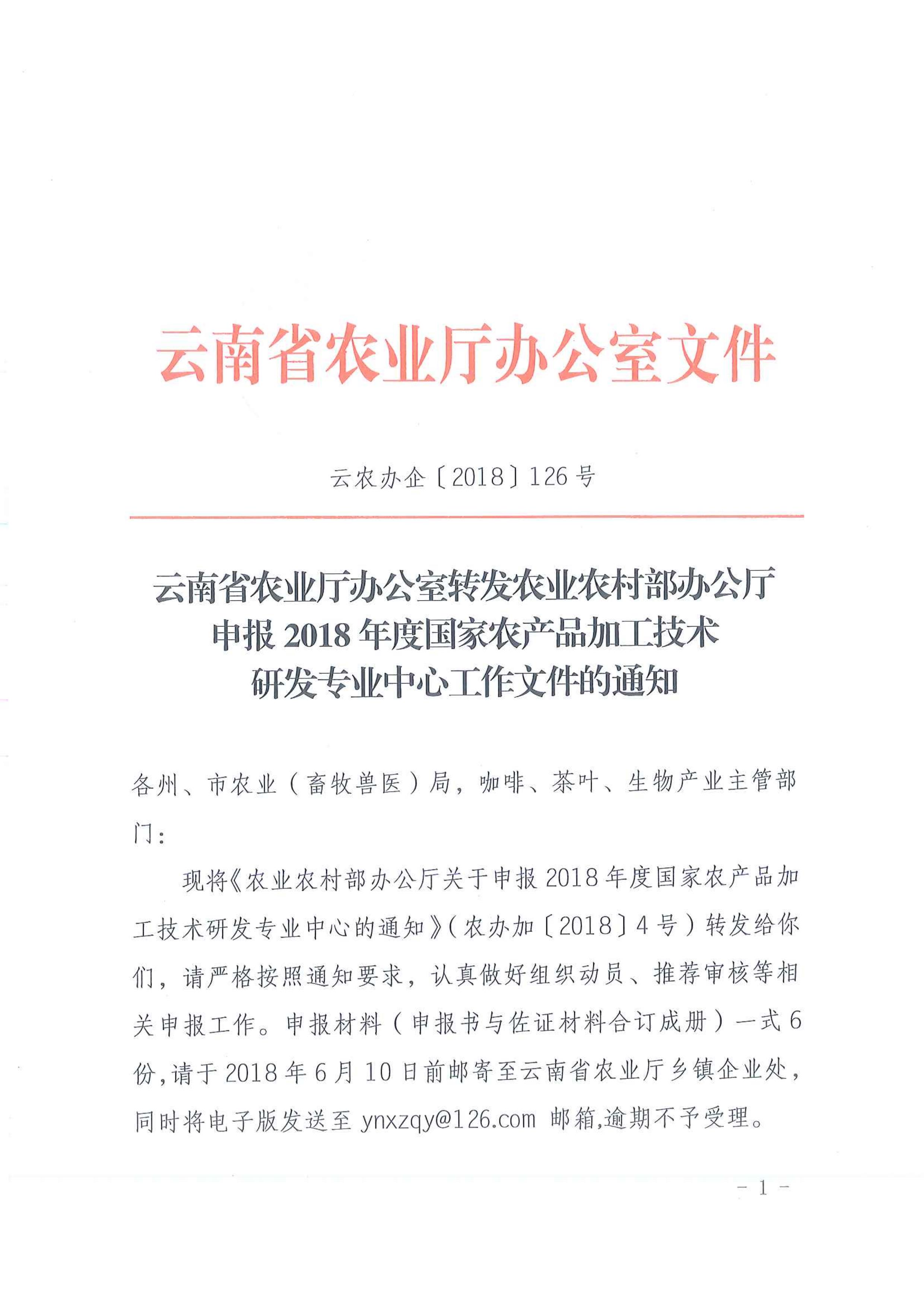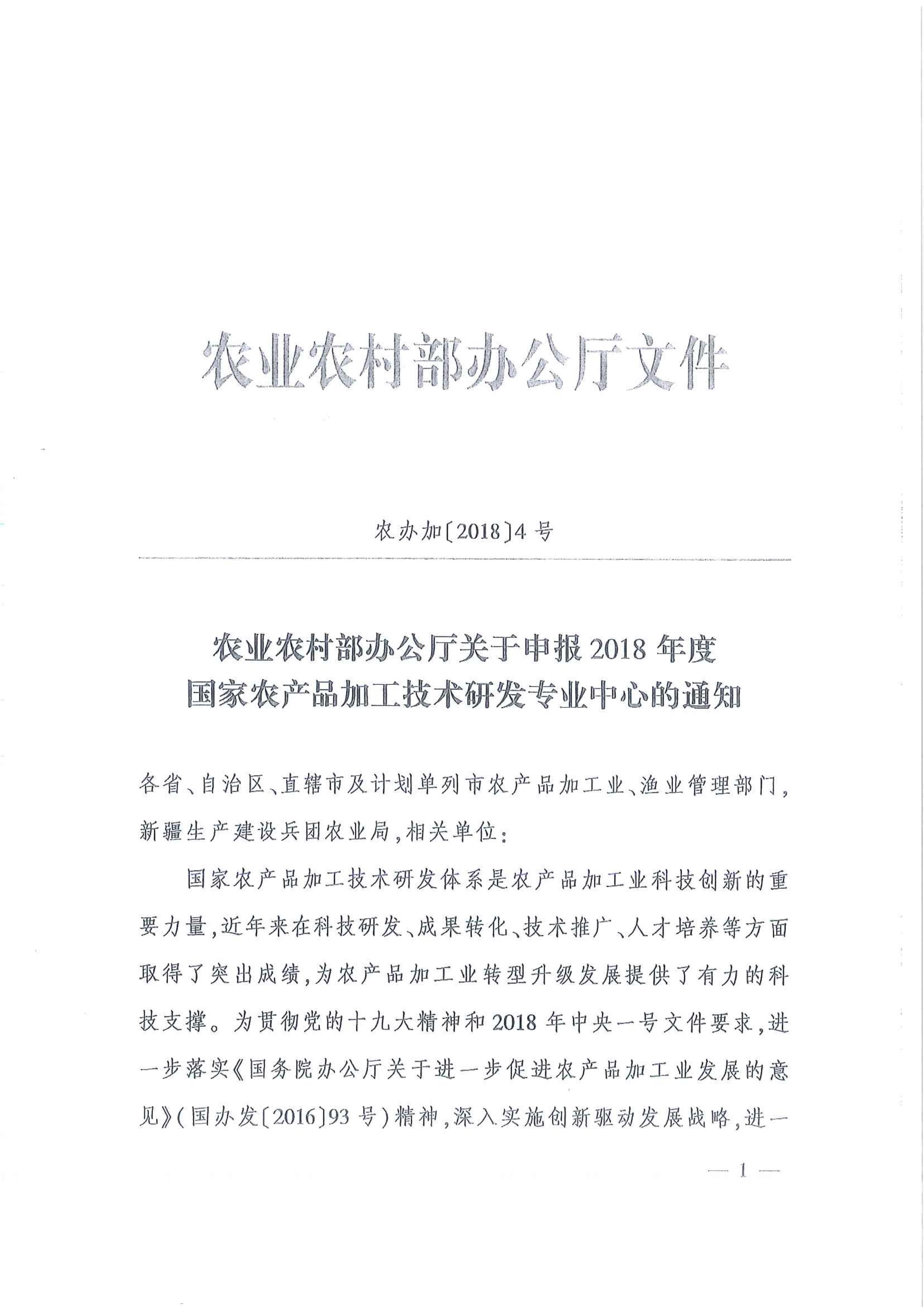 云南省農(nóng)業(yè)廳辦公室轉發(fā)農(nóng)業(yè)農(nóng)村部辦公廳申報2018年度國家農(nóng)產(chǎn)品加工技術研發(fā)專業(yè)中心工作文件的通知
