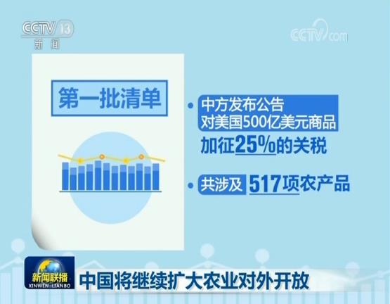 央視網(wǎng)消息(新聞聯(lián)播):中國是世界上最大的農(nóng)產(chǎn)品進(jìn)口國,美國是世界上最大的農(nóng)產(chǎn)品出口國,在中美經(jīng)貿(mào)磋商當(dāng)中,農(nóng)業(yè)一直是核心議題。