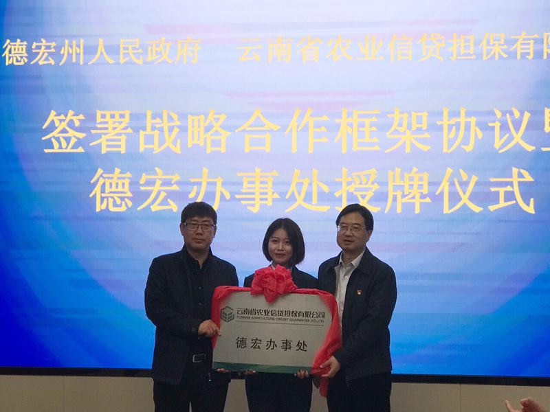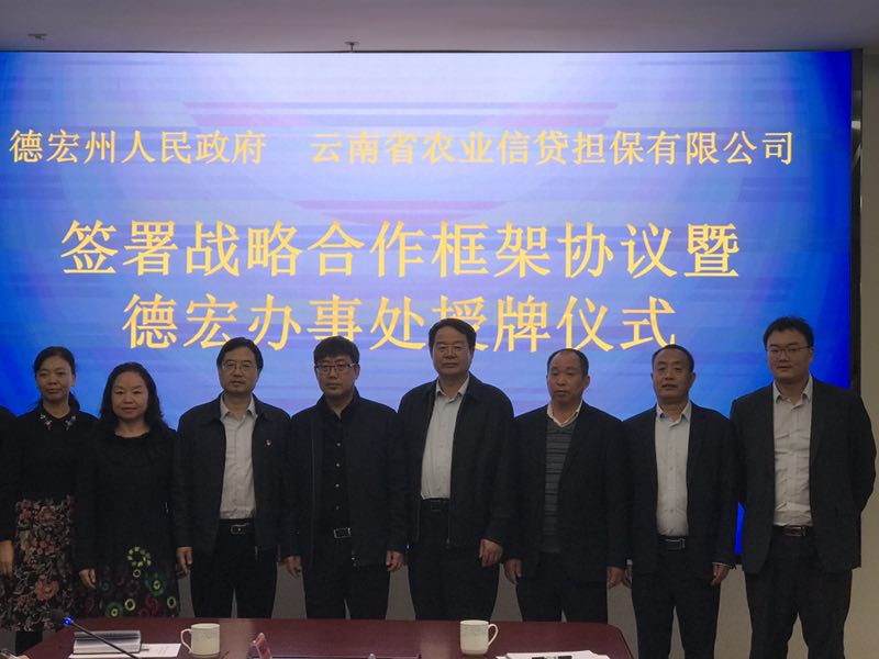 12月19日上午,德宏州人民政府、云南農(nóng)擔公司簽署戰(zhàn)略合作框架協(xié)議暨德宏辦事處授牌儀式在芒市會堂舉行。德宏州委常委、常務副州長馬云峰,農(nóng)擔公司董事長郭影、總經(jīng)理杜開波、機構(gòu)部負責人蔡菲、德宏州財政局、農(nóng)業(yè)局、人行德宏支行、德宏銀監(jiān)分局、農(nóng)行德宏分行、省聯(lián)社德宏辦、各縣市政府等相關單位參加會議。