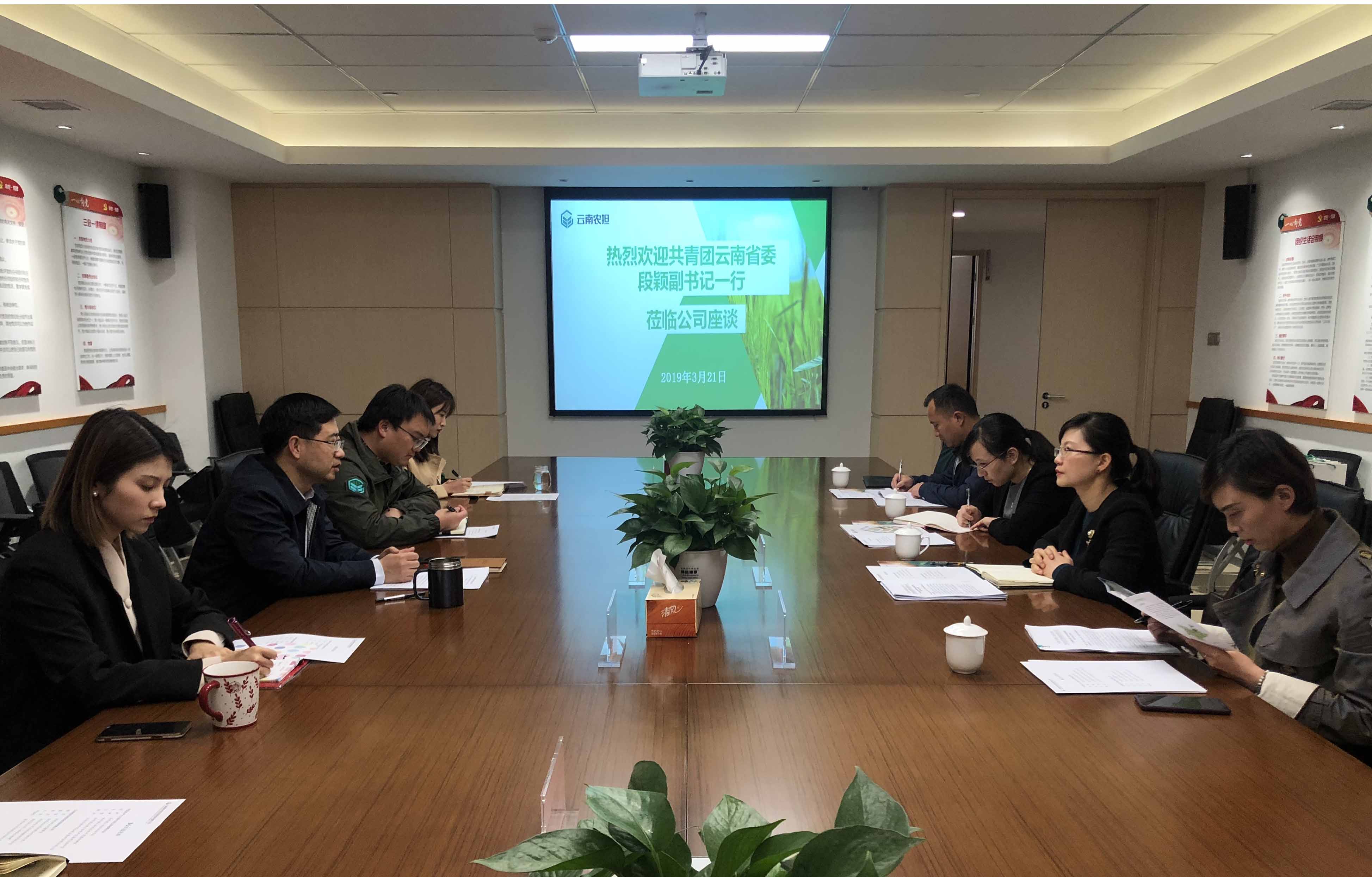 3月21日,共青團云南省委副書記段穎率青年發(fā)展部、青年創(chuàng)業(yè)就業(yè)基金會赴公司就雙方合作進行座談。公司董事長郭影、風險控制部、業(yè)務二部、機構(gòu)合作部參加會議。會上雙方圍繞加快推進中國青年農(nóng)業(yè)創(chuàng)業(yè)金融扶持專項計劃先期試點工作深入交換意見。