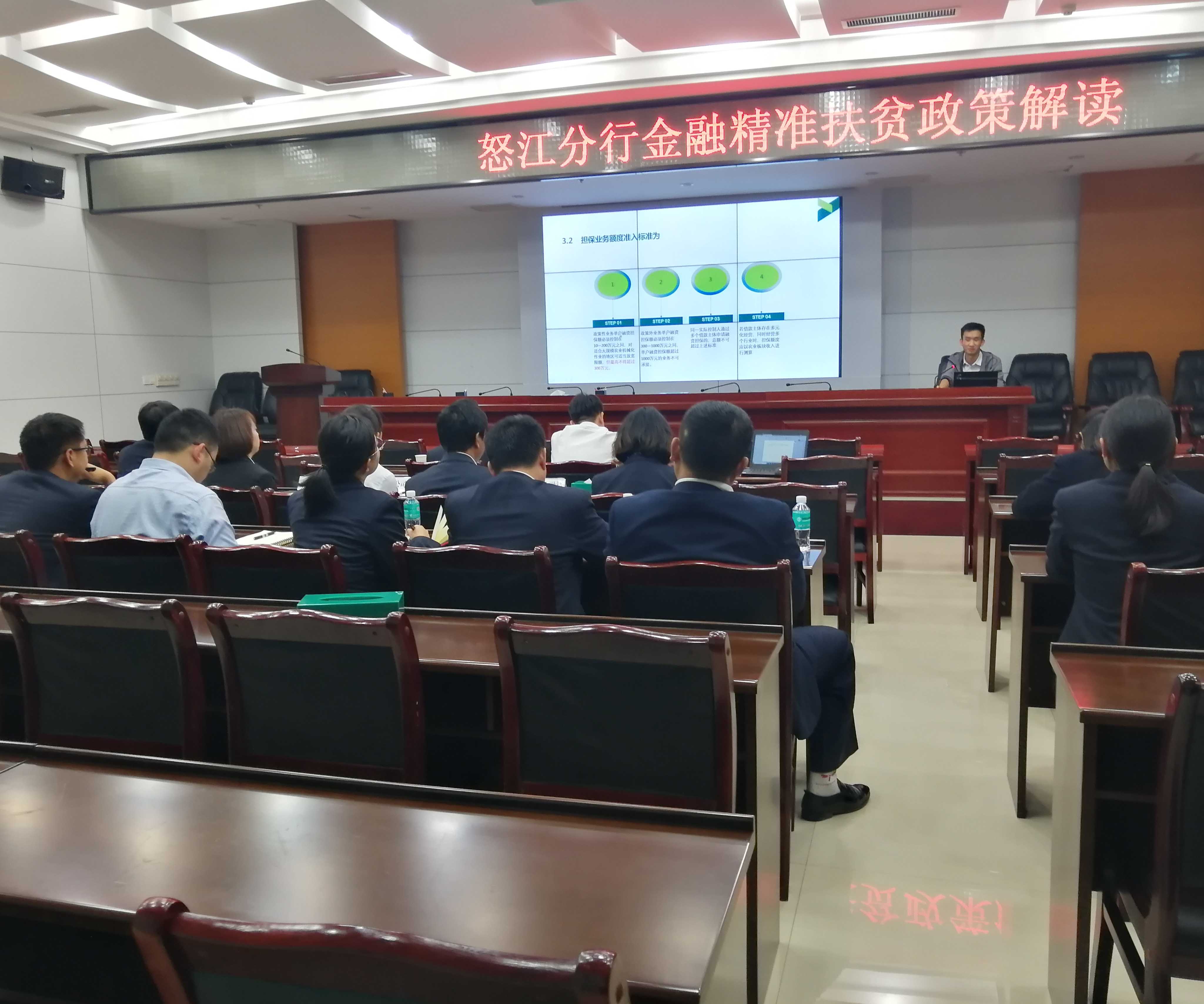 2019年3月27日,瀘水辦事處全體人員參加了農(nóng)業(yè)銀行瀘水市支行的“銀擔(dān)保座談會(huì)”,并現(xiàn)場(chǎng)開(kāi)展了業(yè)務(wù)培訓(xùn)。農(nóng)業(yè)銀行怒江州副行長(zhǎng)李磊、怒江州副行長(zhǎng)段玉珊,瀘水市副行長(zhǎng)李婧,和各縣市分行客戶經(jīng)理出席了會(huì)議。