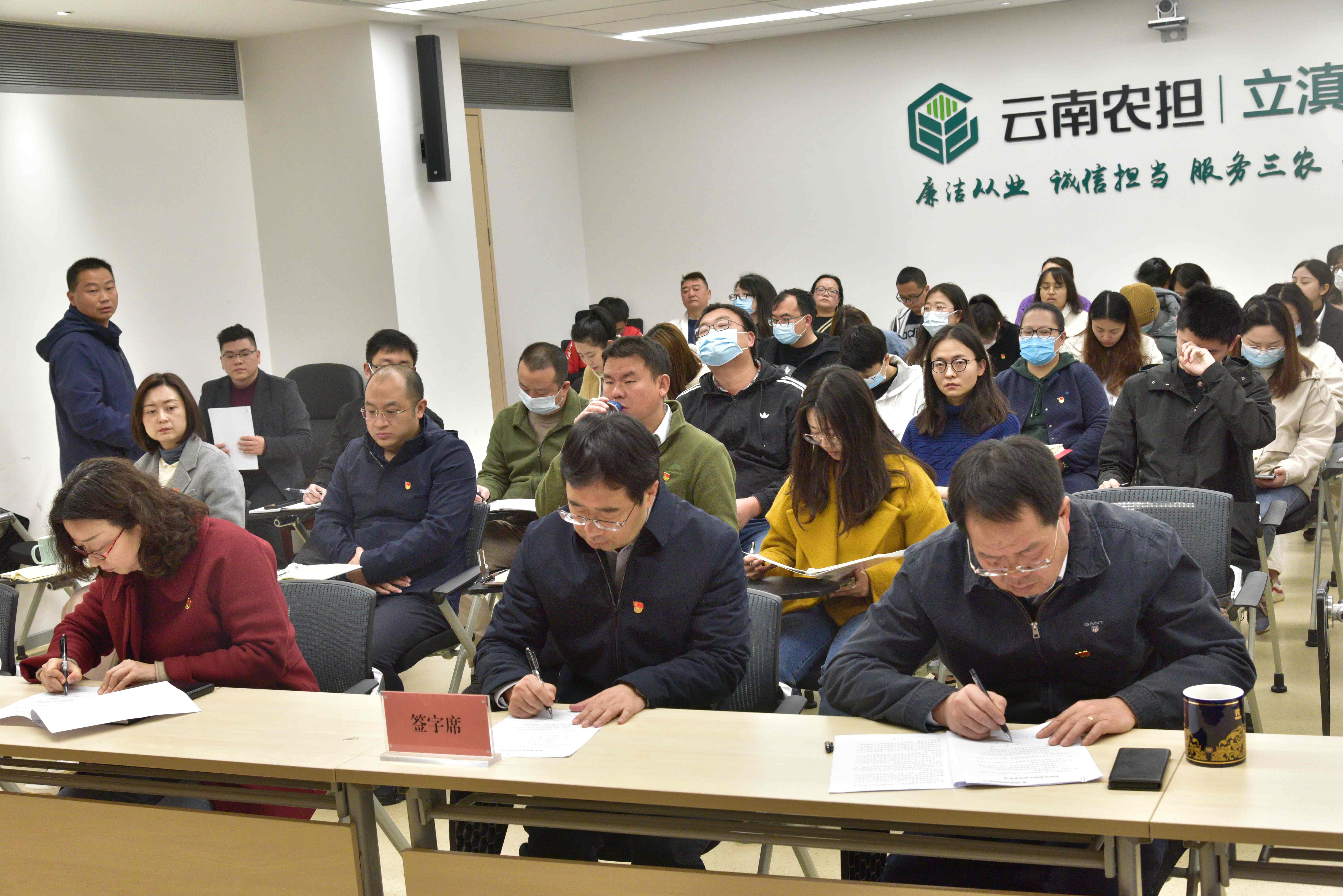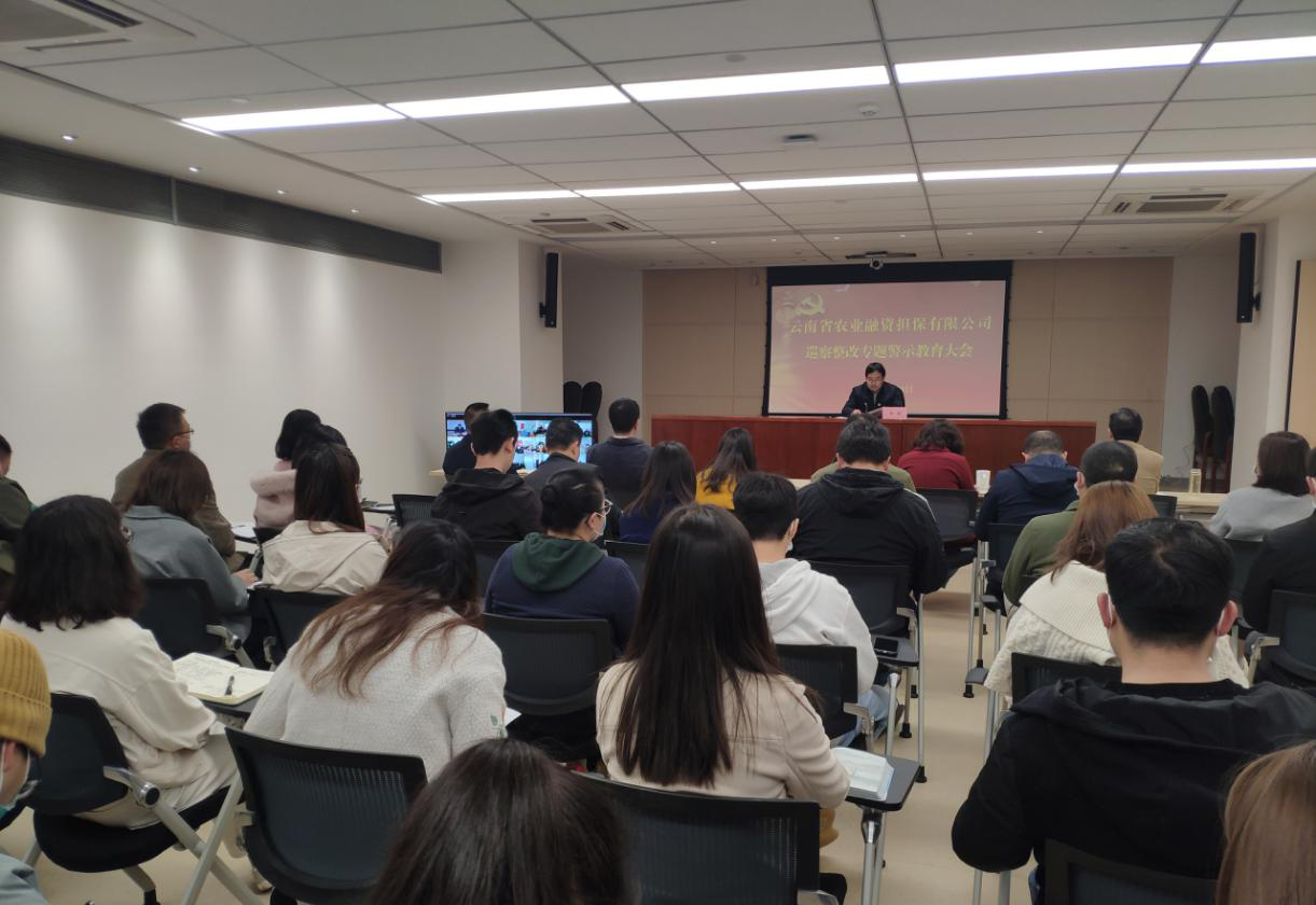 2月20日,云南省農(nóng)業(yè)融資擔(dān)保有限公司召開巡察整改專題警示教育大會。公司黨總支部書記、郭影作巡察整改專題警示教育宣講,組織員工簽訂《農(nóng)擔(dān)從業(yè)禁止事項承諾書》,黨總支部紀(jì)檢委員李建華作提升員工廉潔和服務(wù)意識培訓(xùn)。會議由郭影同志主持,省公司全體員工參加了會議,州市辦事處員工通過視頻會議方式參會。