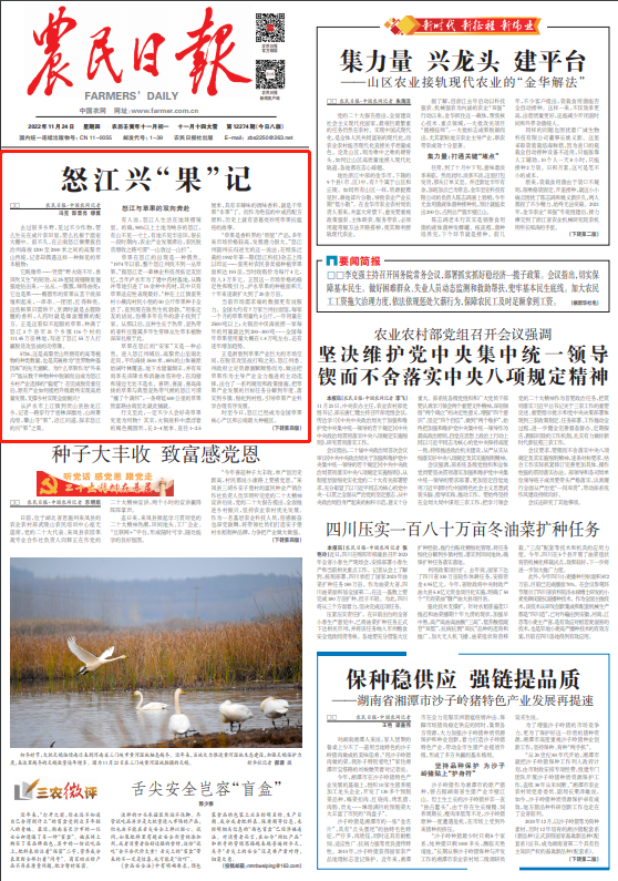 《農(nóng)民日?qǐng)?bào)》頭版頭條刊文