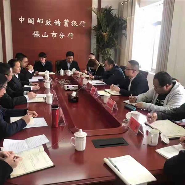 農(nóng)擔(dān)公司副總經(jīng)理廖寅皓一行攜保山辦事處成員到中國郵政儲蓄銀行保山市分行開展業(yè)務(wù)座談