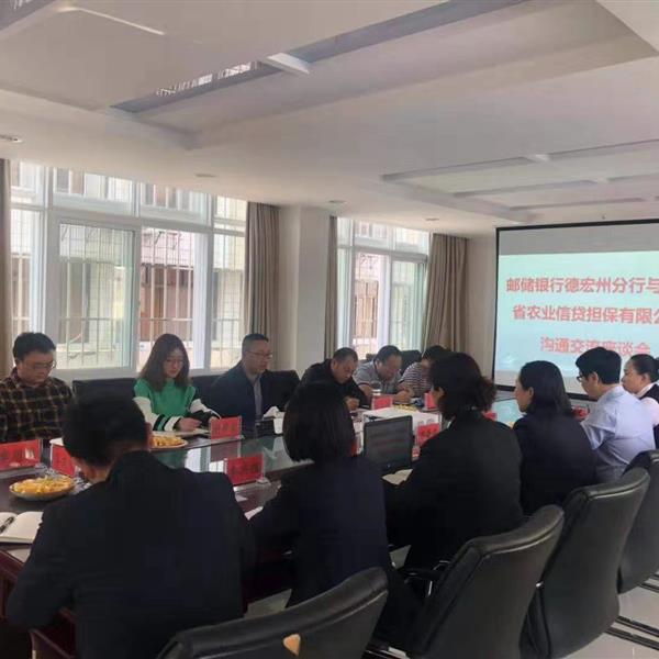 2月19日,農(nóng)擔(dān)公司副總經(jīng)理廖寅皓一行攜德宏辦事處人員至郵儲銀行德宏州分行進(jìn)行交流座談。