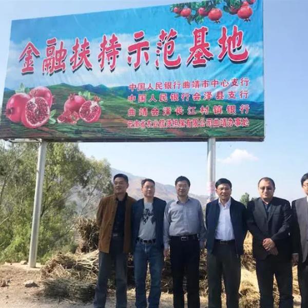 4月12日,農(nóng)擔(dān)公司董事長郭影與曲靖市財政局、會澤人行、會澤長江村鎮(zhèn)銀行及其他幾家金融機(jī)構(gòu)領(lǐng)導(dǎo)一行到會澤縣娜姑鎮(zhèn)干海子軟籽石榴村進(jìn)行實地考察調(diào)研。