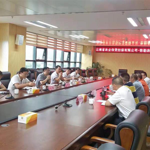 7月30日,云南農(nóng)擔董事長郭影攜戰(zhàn)略發(fā)展部負責人蔡菲、農(nóng)擔一部負責人劉川、紅河辦事處和彌勒辦事處到中國農(nóng)業(yè)銀行紅河州分行開展業(yè)務(wù)座談。