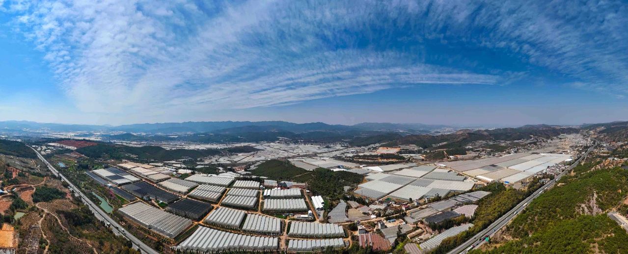 昆明市晉寧區(qū)現(xiàn)代花卉產(chǎn)業(yè)園區(qū)俯瞰圖。云南日?qǐng)?bào)記者 高吳雙、舒倩/攝