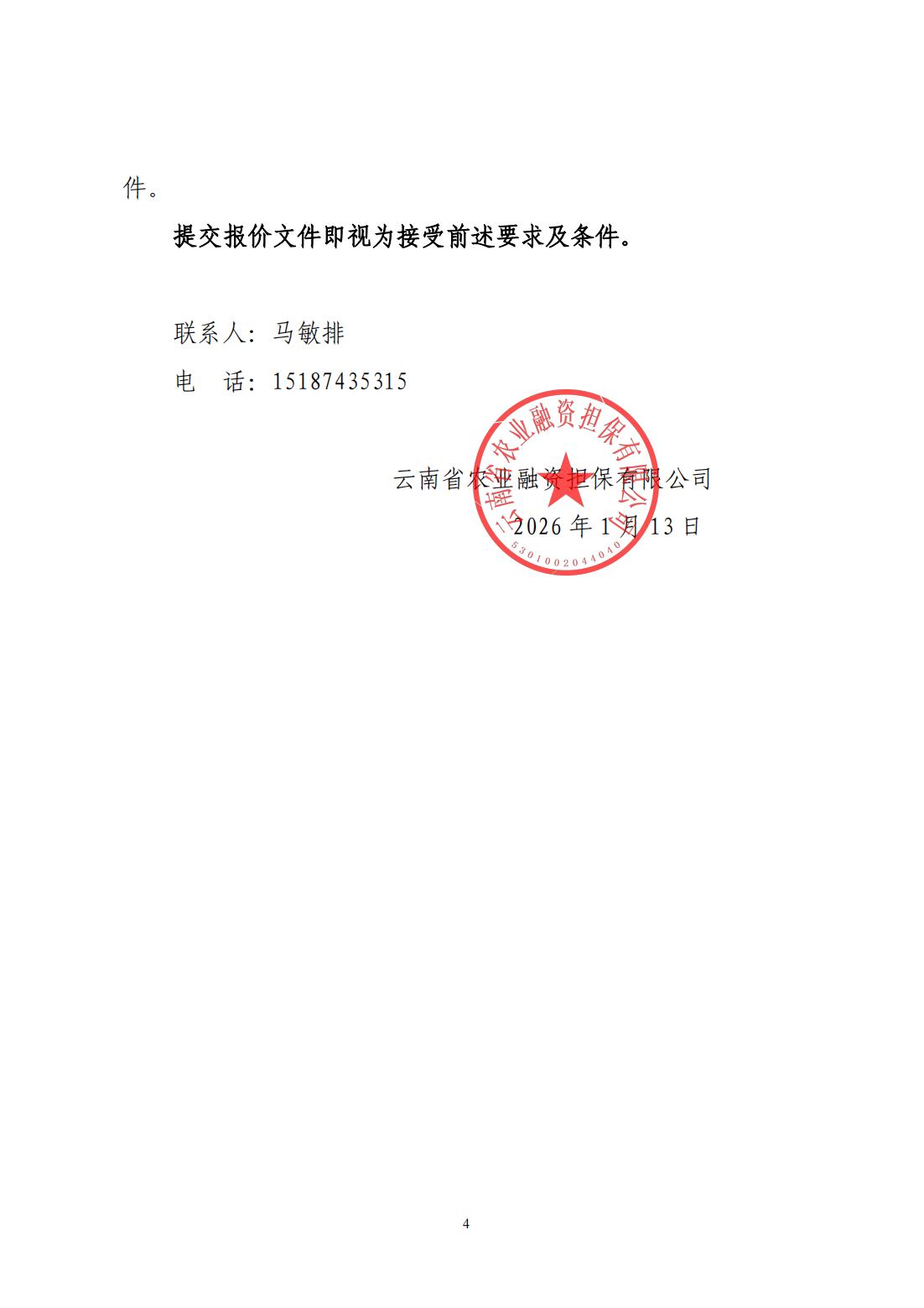 云南省農(nóng)業(yè)融資擔保有限公司詢價公告