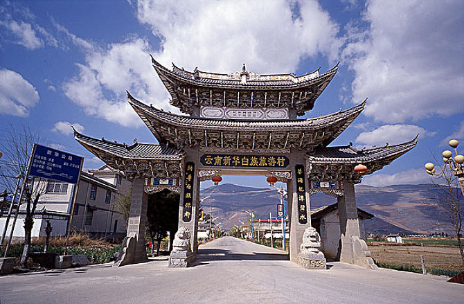 新華村位于大理州鶴慶縣西北部鳳凰山腳下,一個集田園風光、民居、民俗和民族手工藝品生產(chǎn)加工為一體的白族村寨,符合農(nóng)業(yè)觀光定義分類中的觀光副業(yè)(與農(nóng)業(yè)相關(guān)的具有地方特色的工藝品及其加工制作過程)。新華村依山旁水,是依原生態(tài)自然村落建成的文化旅游區(qū),轄區(qū)有1166戶,海拔在2000―2300米之間,位于鶴慶縣城西北部,距麗江39公里,白族占總?cè)?8.5%,是一個典型的白族寨子。2001年,新華村因其悠久的手工藝文化、獨特的民風民俗及優(yōu)美的田園風光被國家文化部、中國村社發(fā)展促進會分別命名為"中國民間藝術(shù)之鄉(xiāng)"和"中國民俗文化村",2006年,新華村又榮獲"云南十大名鎮(zhèn)"的稱號。新華村的"小爐匠"自唐代南詔國時期就開始加工金銀銅等金屬手工藝品,至今已有一千多年的歷史。新華村兼有優(yōu)美的自然景觀,周圍山水交相輝映,地下水儲量豐富,行政區(qū)境內(nèi)的萬畝草海濕地和清澈甘醇的農(nóng)家泉眼。獨具地方民族特色的建筑風格,豐富清澈的水域,既不乏江南水鄉(xiāng)的柔美,更具有高原獨特的水鄉(xiāng)情結(jié)。2009年12月28日,國家旅游局正式批準"銀都水鄉(xiāng)"新華村為國家4A級旅游行政區(qū)。