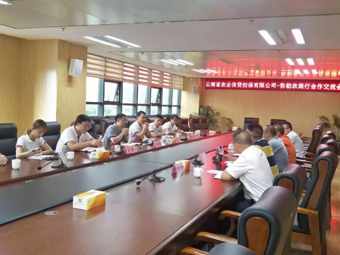 7月30日下午,公司調研組率紅河辦事處、彌勒辦事處業(yè)務主管到中國農業(yè)銀行紅河州分行開展業(yè)務座談,農業(yè)銀行紅河州分行行長朱旭鵬、副行長楊增偉、副行長李波、三農金融部總經理丁俊洪以及公司業(yè)務部、信用管理部業(yè)務骨干成員參加了座談。會上雙方緊緊圍繞“脫貧攻堅”,加大對扶貧重點縣尤其是深貧縣的支持力度,緊扣“鄉(xiāng)村振興”主題,加大對紅河北部地區(qū),尤其是蒙自、開遠、建水、彌勒、瀘西等現(xiàn)代農業(yè)初見雛形縣市的支持力度,并希望雙方能從零、敲、碎、打到產品業(yè)務創(chuàng)新,加快業(yè)務向線上化、標準化產品發(fā)展。
