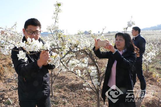 陽春時節(jié),行走在楚雄彝族自治州牟定縣鳳屯鎮(zhèn)颯馬場的梨園間,綴滿枝頭的梨花迎風怒放,淡雅清香撲面而來,讓人心曠神怡。