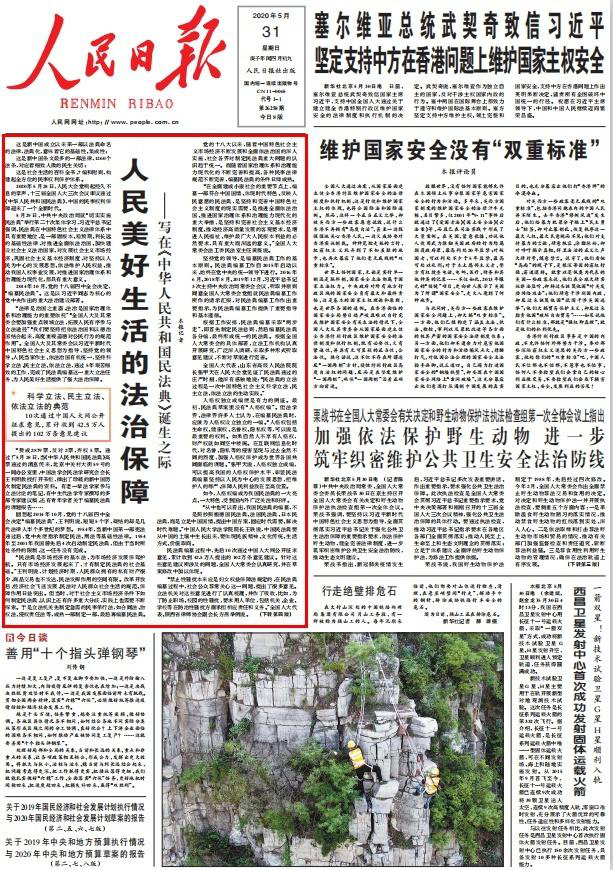 人民美好生活的法治保障 ——人民日報頭版頭條談民法典誕生