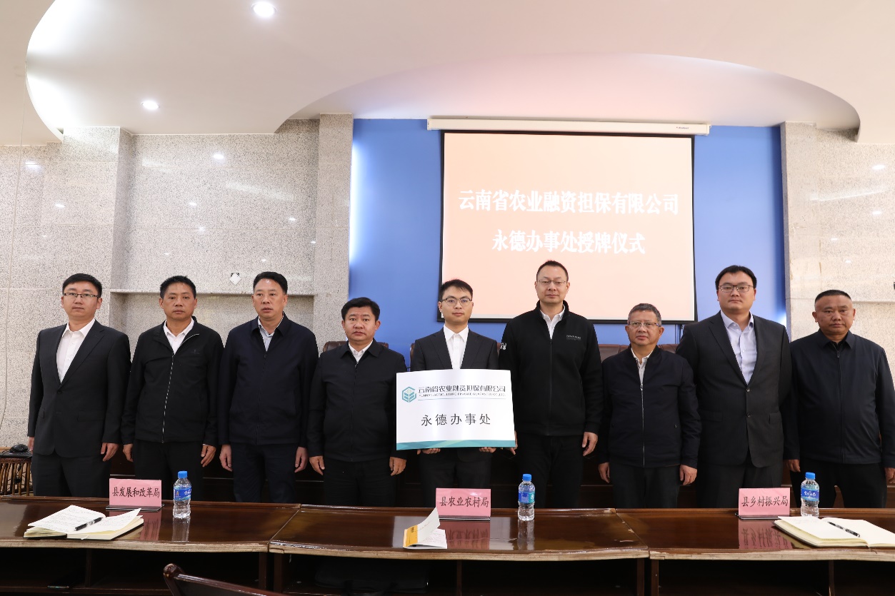 為進(jìn)一步完善我省農(nóng)業(yè)信貸擔(dān)保體系,發(fā)揮好農(nóng)業(yè)融資擔(dān)保撬動(dòng)作用。2023年2月15日,云南省農(nóng)業(yè)融資擔(dān)保有限公司永德辦事處授牌儀式在永德縣財(cái)政局舉行。永德縣委副書記、縣長彭春蕊、公司總經(jīng)理李世偉、臨滄市金融辦副主任唐興華、臨滄市農(nóng)業(yè)農(nóng)村局三級(jí)調(diào)研員江鴻鍵等領(lǐng)導(dǎo)出席會(huì)議。永德縣財(cái)政局(金融辦)、縣農(nóng)業(yè)農(nóng)村局、縣鄉(xiāng)村振興局、縣11個(gè)鄉(xiāng)(鎮(zhèn))人民政府有關(guān)單位領(lǐng)導(dǎo)、縣人民銀行及縣域內(nèi)金融機(jī)構(gòu)主要負(fù)責(zé)人,農(nóng)擔(dān)公司戰(zhàn)略發(fā)展部、業(yè)務(wù)發(fā)展部參加儀式。