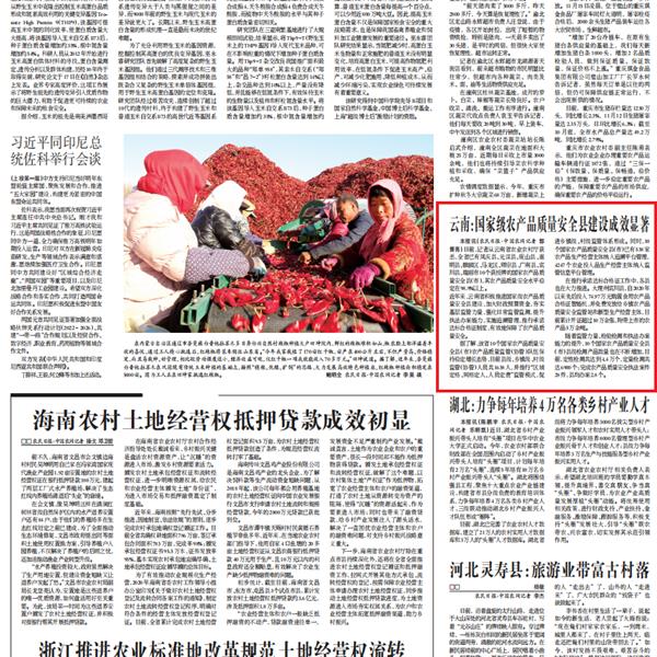 國家級農(nóng)產(chǎn)品質(zhì)量安全縣建設成效顯著!《農(nóng)民日報》刊文點贊云南